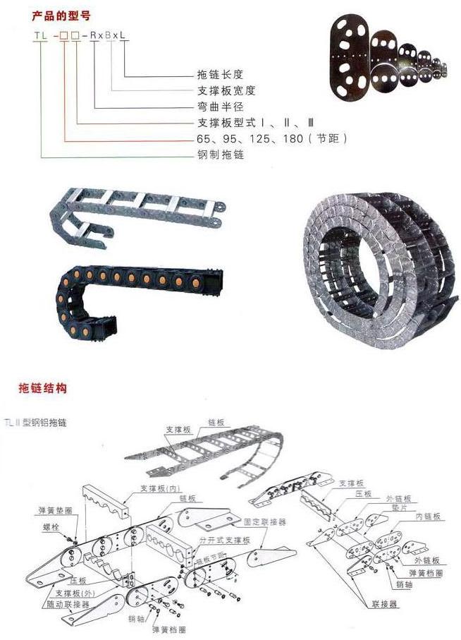 TL系列鋼制電纜拖鏈,銷軸及支撐板和隨動(dòng)連接器等零件組成。拖鏈可適用最大移動(dòng)速度為40米/分,拖鏈安全使用壽命不少于100萬次(往復(fù))。該產(chǎn)品具有設(shè)計(jì)精巧、使用靈活等特點(diǎn),被廣泛應(yīng)用與冶金、鋼鐵、鑄造、大型機(jī)械等行業(yè)作為短距離,油、氣、水軟管和電纜同時(shí)移動(dòng)之用。