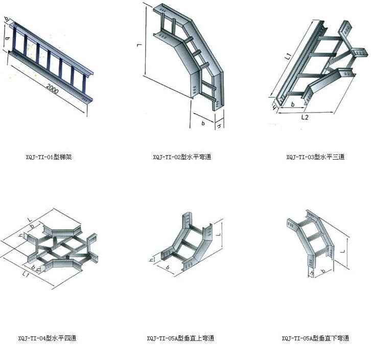 梯級式電纜橋架備有護罩,需要配護罩時可在訂貨時注明,其所有配件與托盤式、槽式橋架通用。