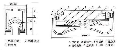 ?單極組合式滑觸線導(dǎo)電器:為接簧支撐式,僅在滑觸線下部即可推入,但須在牽引器同步進(jìn)行,并保證拉簧力量適當(dāng),以免加大電刷磨損。牽引器與導(dǎo)電器同步進(jìn)行,可用螺栓或電焊方式固定在行車等移動電器上,并適當(dāng)保證導(dǎo)電器運行不受扭力。